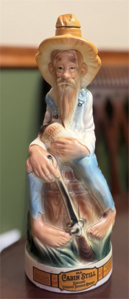 Collectible 1969 Old Cabin Still Kentucky Bourbon Whiskey Decanter. Novelty Hill Billy design, excellent condition. 11 1/4” tall.