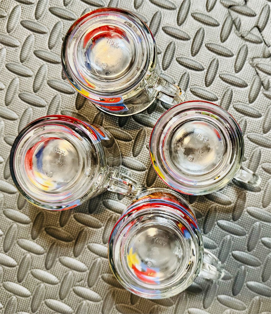 6 glass cups with Garlfield and Odie. 4 of the cups have Garfield and Odie on a canoe, the other 2 have them on a see-saw. All in excellent condition. See photos for measurements.