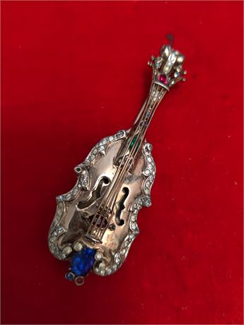 Vintage Coro Violin Brooch Carnegie Hall Sterling signed Instrument Pin 30.7g (R