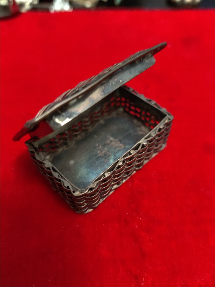 Really cool small sterling silver trinket box. Box weighs 29.22 g. Box is signed on the inside.
