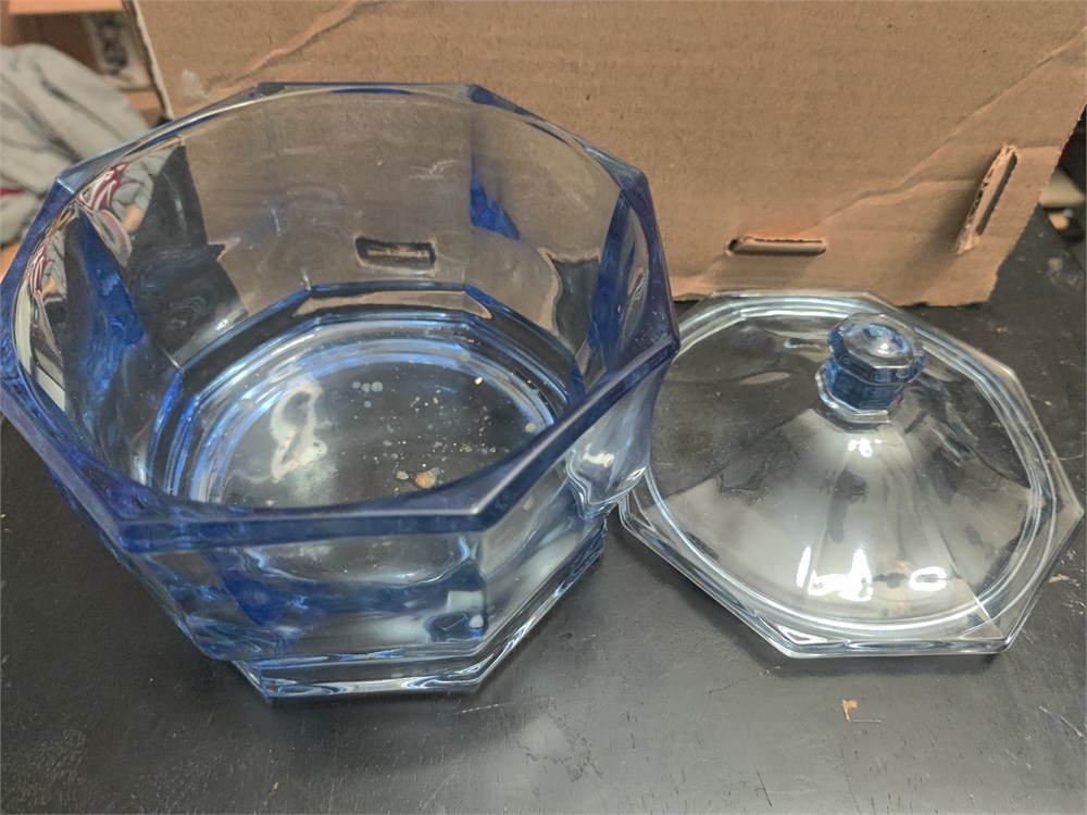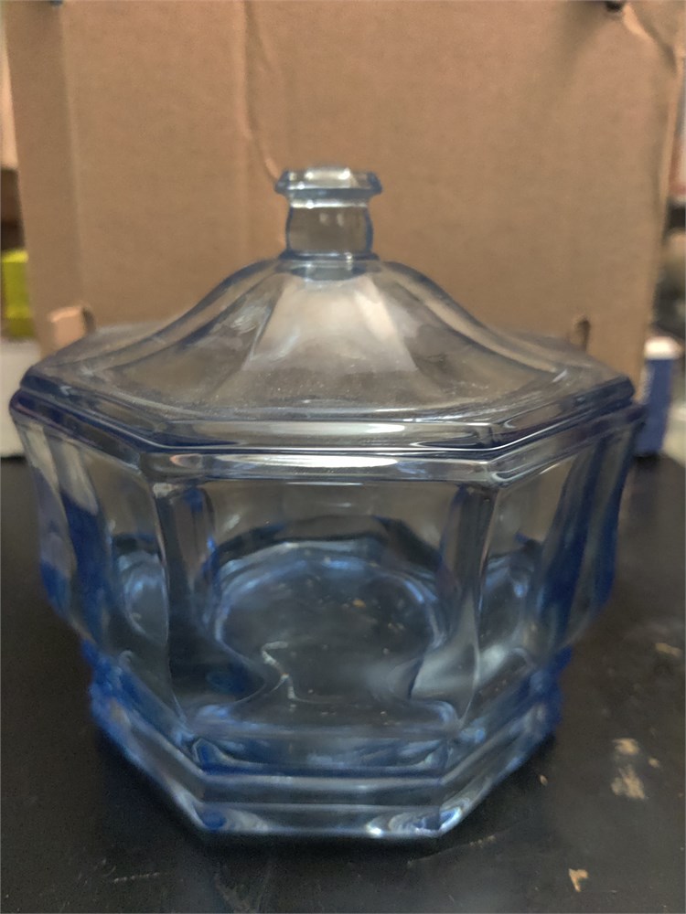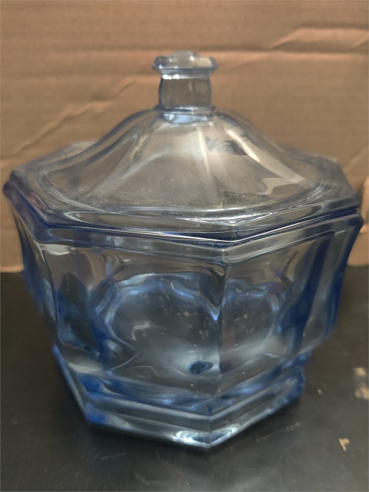 Indiana Glass Candy Dish With Lid- Concord Blue, Octagon Shaped.