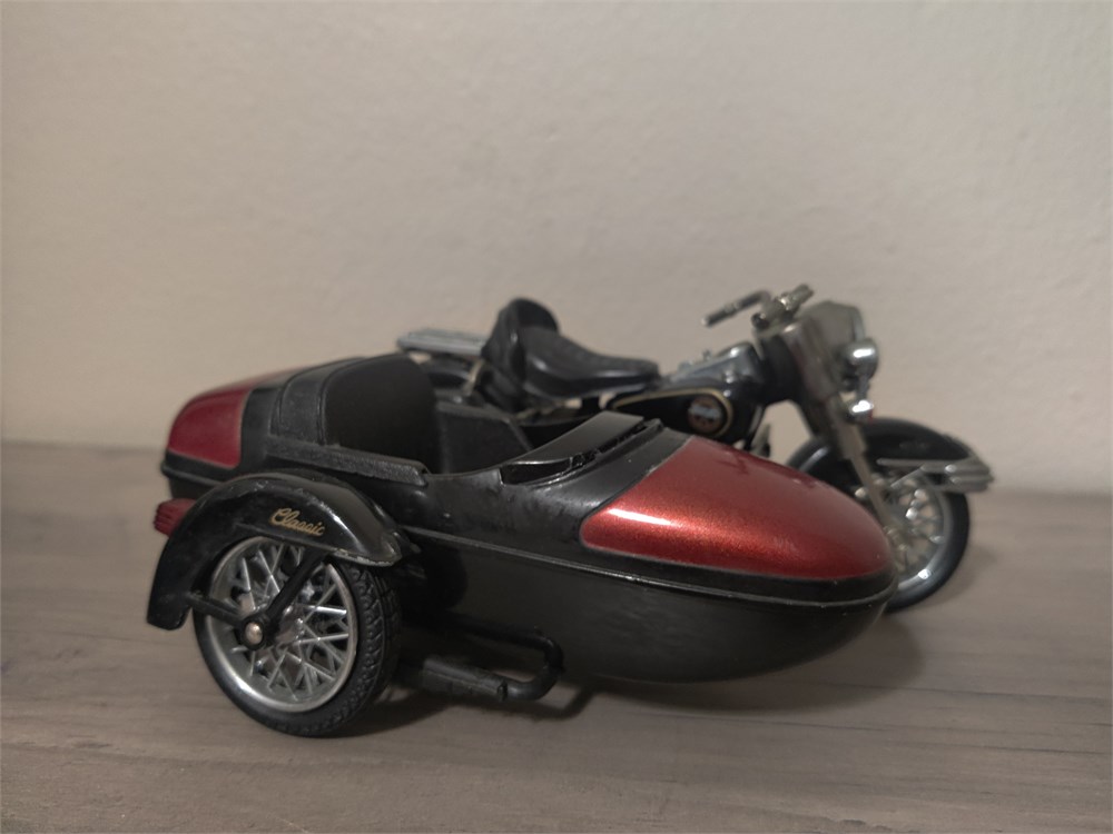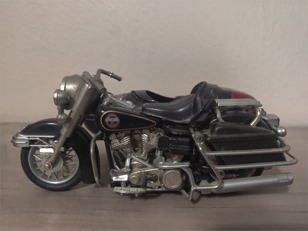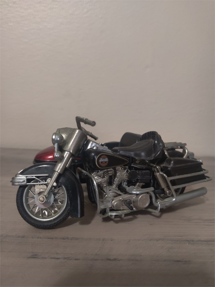 Harley Davidson Electra Glide with Sode Car 1:15 Matchbox 1993. Motorcycle does not come with a box. Item is a little dusty from being displayed.