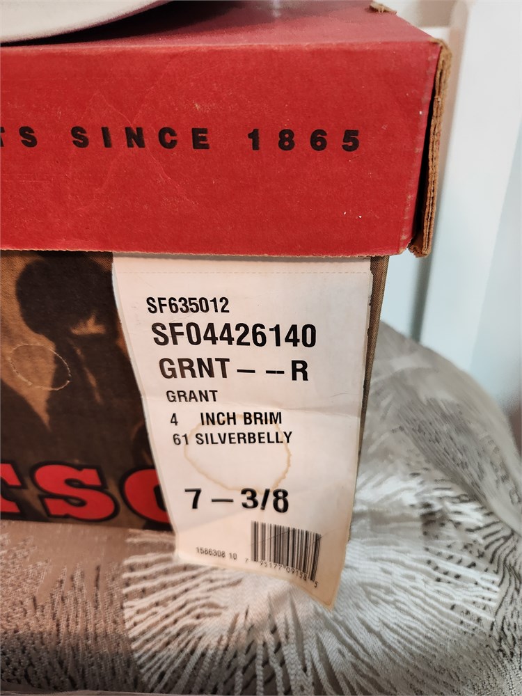 Stetson 61 Silver Belly In Box 7 3/8ths. In very good shape.
