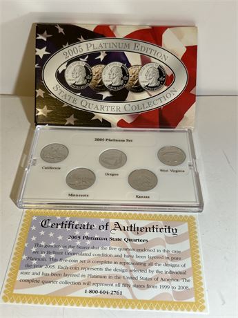 2005 platinum edition state Quarter collection uncirculated California, Minnesota, Oregon, Kansas, West Virginia certification