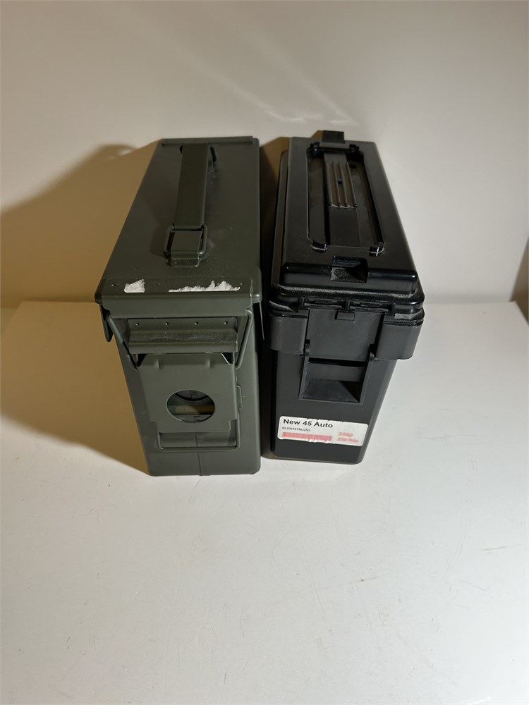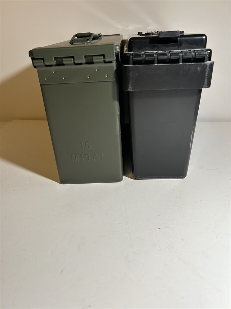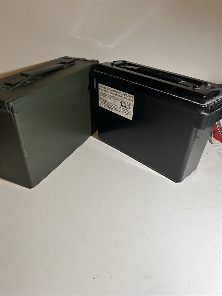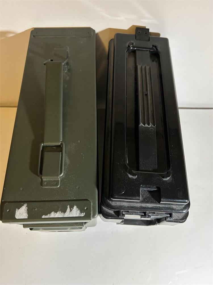 Green metal ammo can one new plastic animal can 10 x 7 looks like New