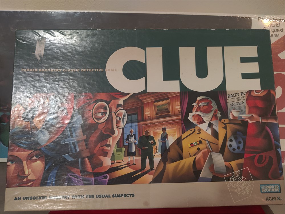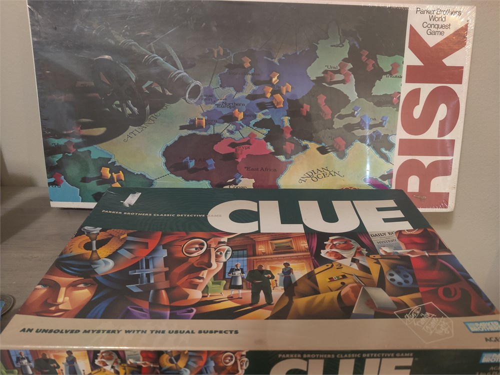Lot of two board games. Parker Brothers risk game is still new in plastic. Also includes Parker Brothers clue detective game.