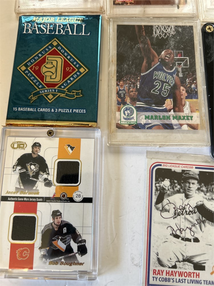 We got basketball baseball hockey football game war in jersey cards, some sign cards one package unopened 12 in plastic couple Hunter loose ones plus