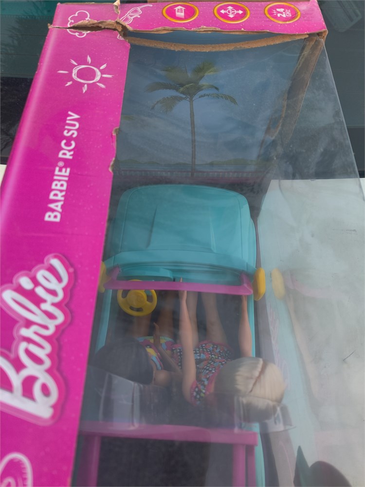 Hot Wheels Barbie RC SUV, Remote-Control Pink Vehicle That Fits 2 Barbie Dolls. Item is new in box. Box has some damage.