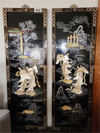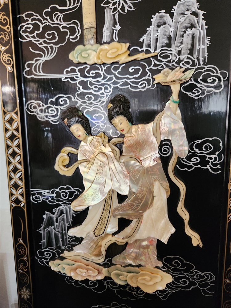 Chinese Black Lacquer 4 Piece Wall Panels. Total of 4 pieces all together make one scene.