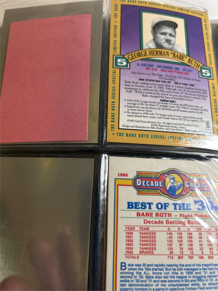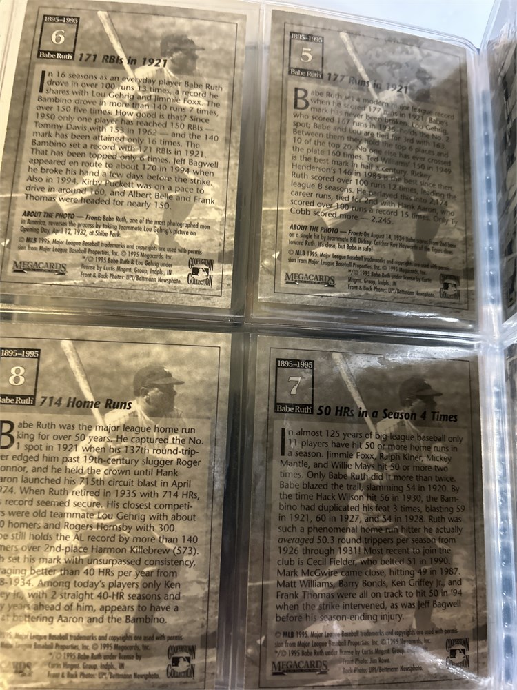 Babe Ruth best of the 3060 home run 847 batting average 8.5 home run percentage cards, Mr. Yankee the Babe played hurt everyone loves the baby George Goodman, eight pages