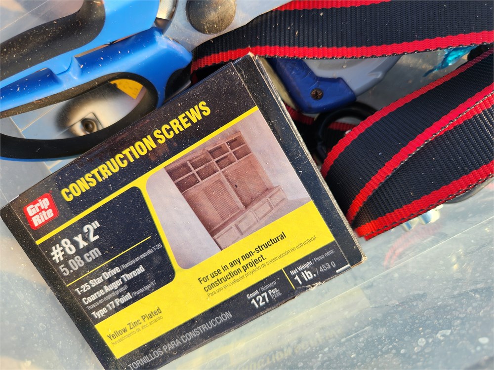 Container w/ Straps, Scissors, & Screws more