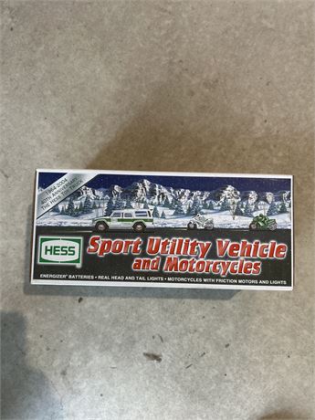 Vintage 40th anniversary Hess Sports utility vehicle and motorcycles 2004 in the original box