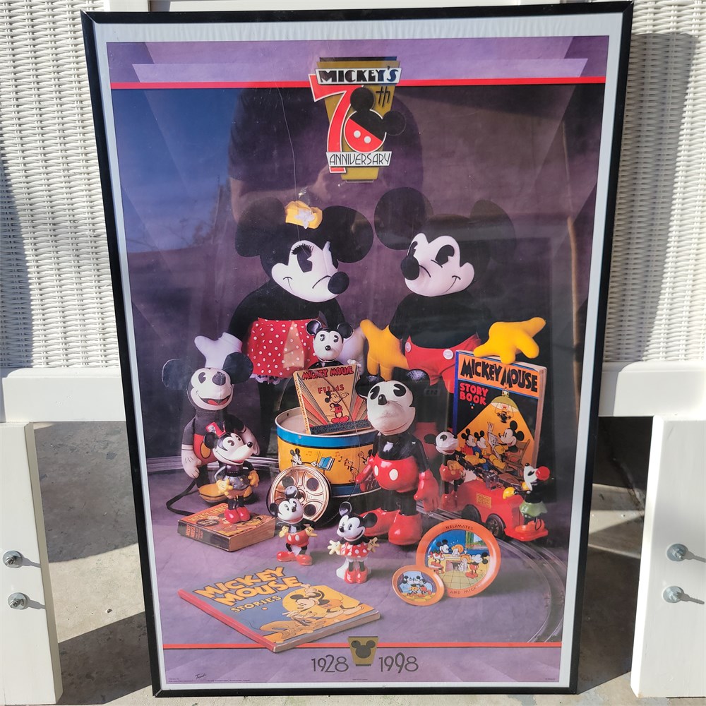 Commemorative Poster Mickey Mouse 70th. Features various memorabilia plush toys, dolls etc...