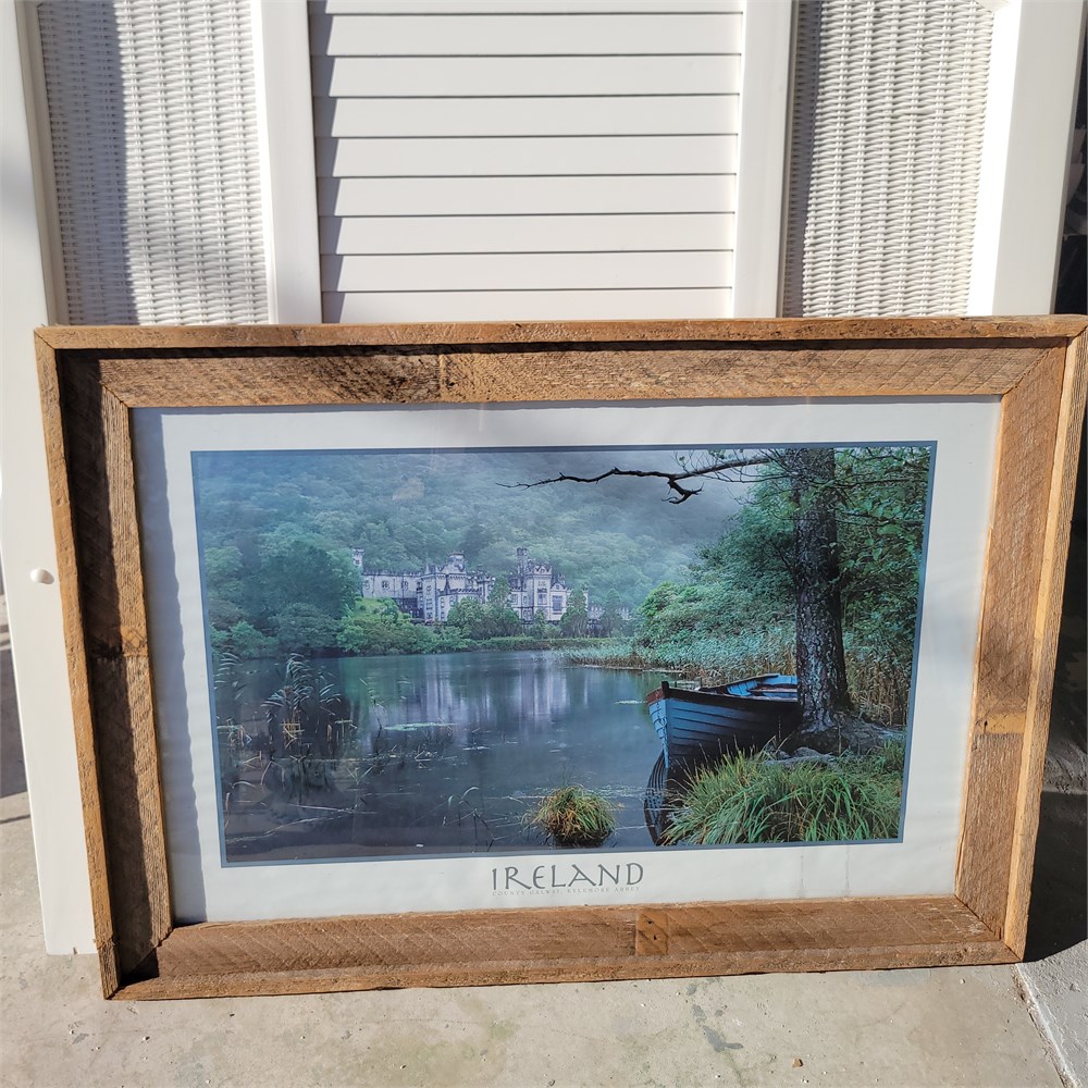 Barnwood Framed Print of Kylemore Abbey Ireland This lot is a Local Pickup Only.  Please bring someone to help load, for auction staff is not able to assist.