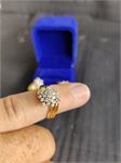 Beautiful handcrafted 14 karat gold and diamond ring with matching earrings. Ring in earrings have matching diamond clusters. Total weight 10.5 g