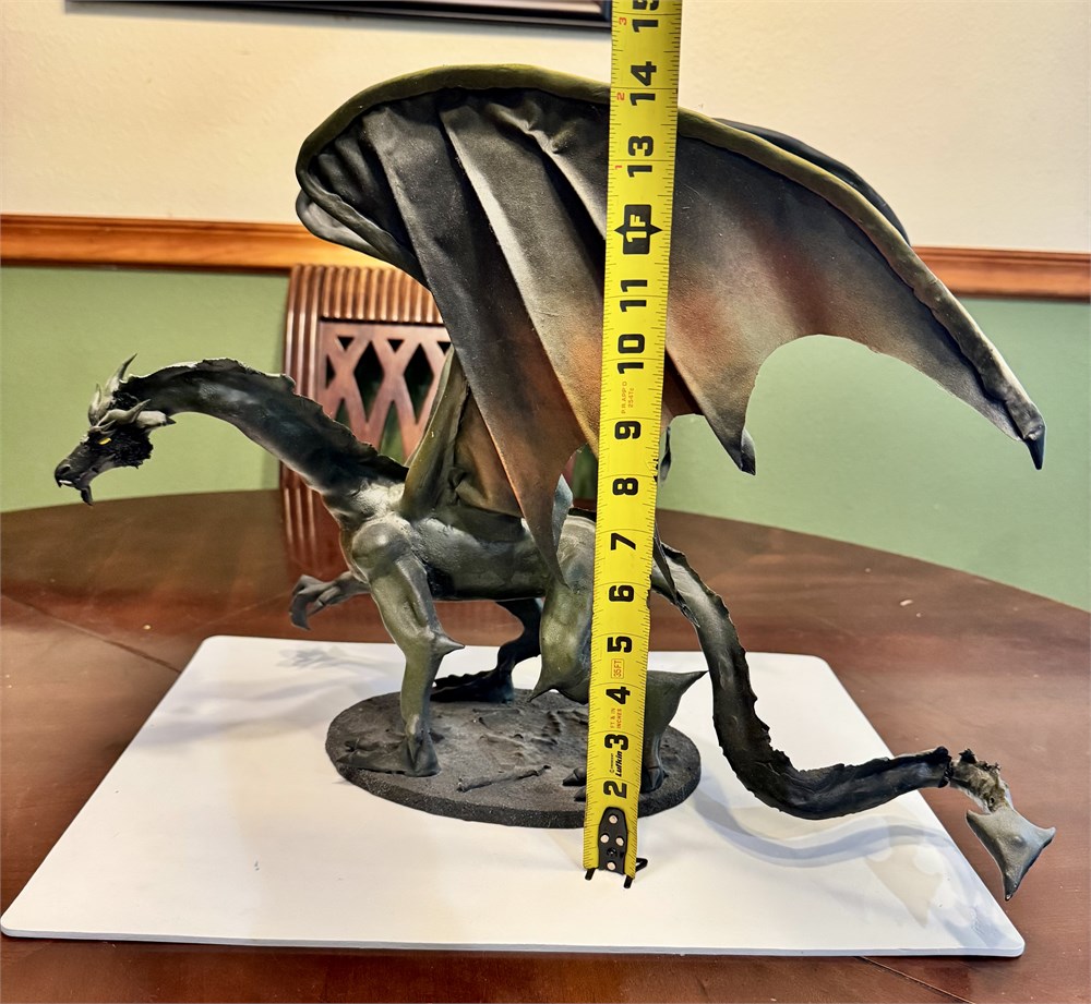Large ha made dragon figurine from Columbia. Has some imperfections as shown in photos. 16"w x 14" t