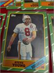1986 Topps football cards. Includes about 50 cards total. There are lots of Hall of famers and several rookie cards. Including Steve Young, Reggie Whit and Bruce Smith rookie cards. All cards look to be in good condition.