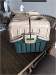 You get all the equipment inside, plus the box itself. It is in good used usable condition. The top handle is broken but the side latches keep it closed and secure with no problem. You get everything inside. See pictures