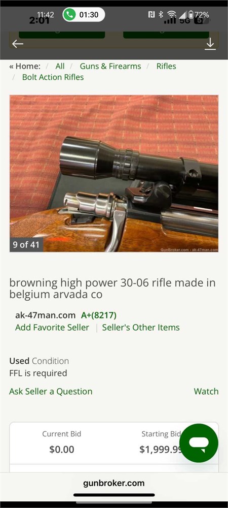 Very nice Browning High Powered Rifle. Caliber is 30-06. Rifle was made in Belgium. Rifle is fitted with 3x-9x Redfield scope. Item is in very good condition. Rifle comes with nice plastic hard case.