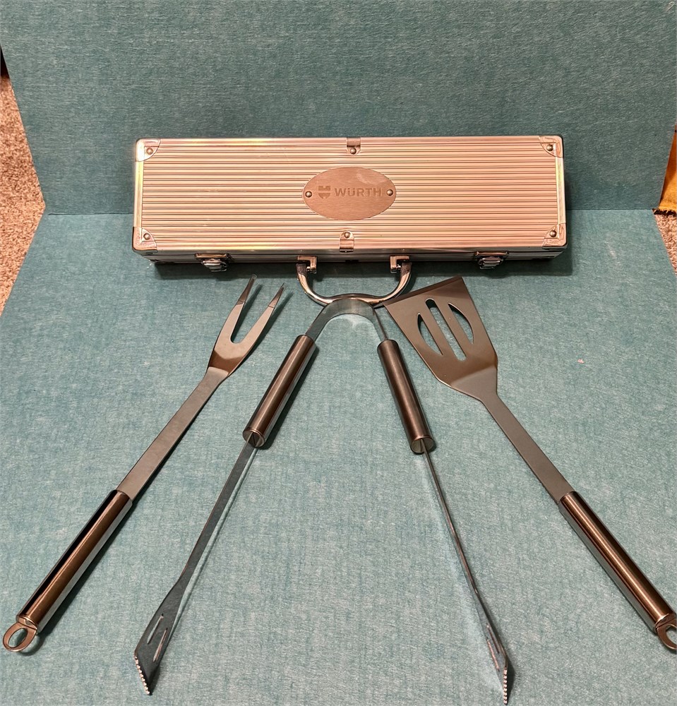 Brand new Wurth grill utensils with aluminum carrying case. Summers coming fast and that means cookouts! One up your neighbor with this fancy set.