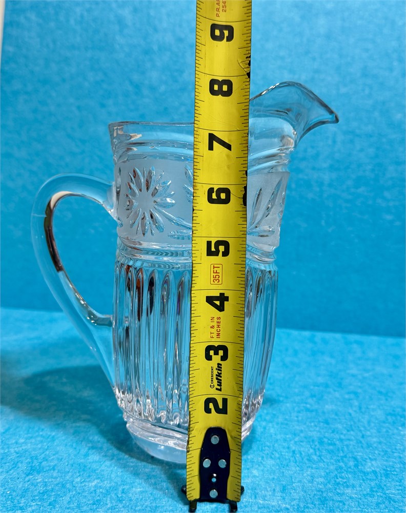 Anchor hocking glass pitcher (shorter pitcher) and a lead glass crystal pitcher from Yugoslavia. Excellent condition.