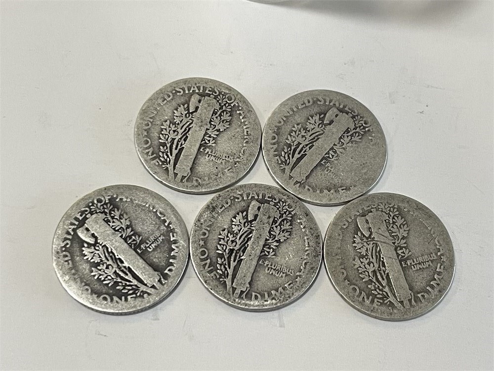 5 silver dimes in plastic tube.  Early dates that should be better than silver value.