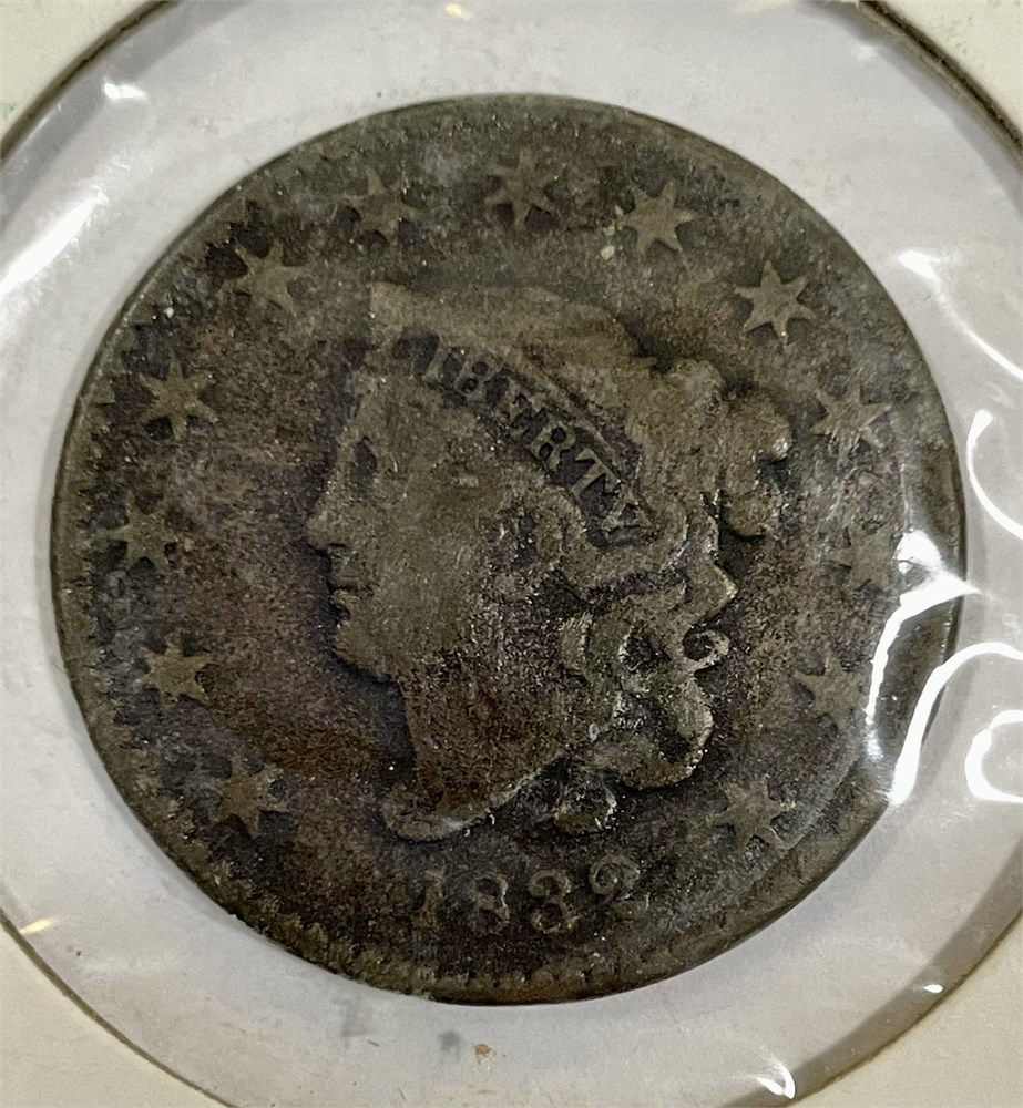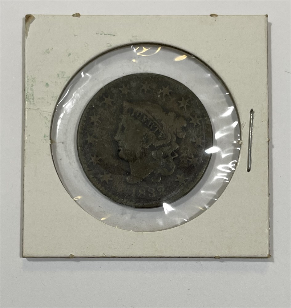 1832 U.S. one-cent coin, penny.  Large Cent, early date.