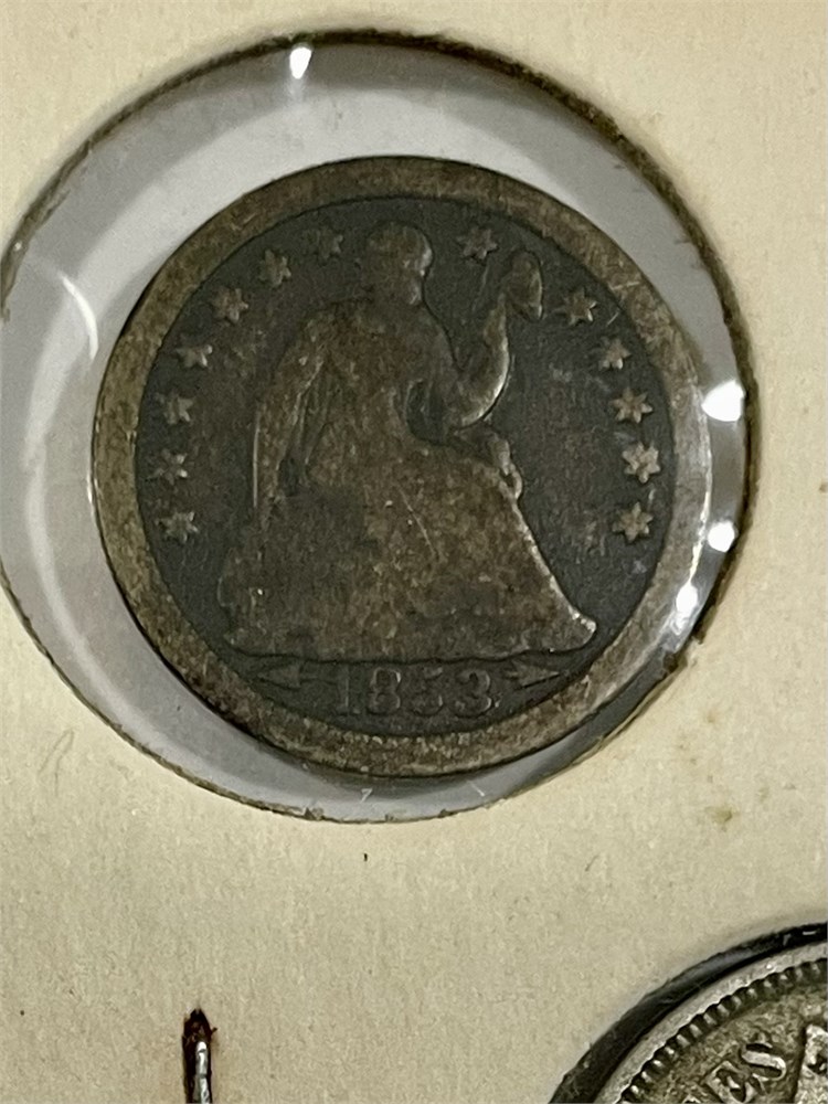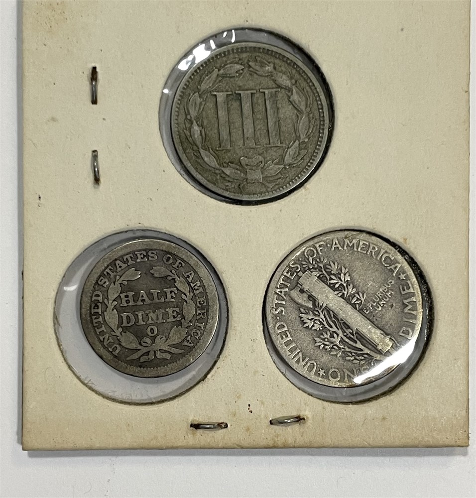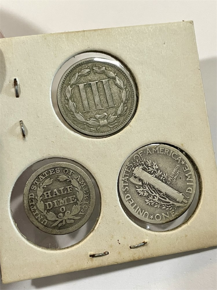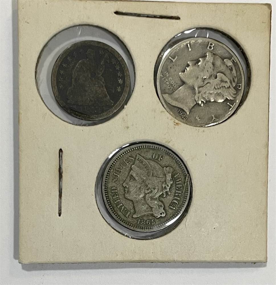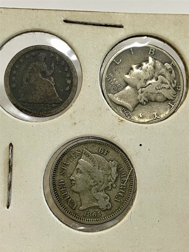 1944 Dime, 1865 3-Cent Nickel, 1853 Half Dime