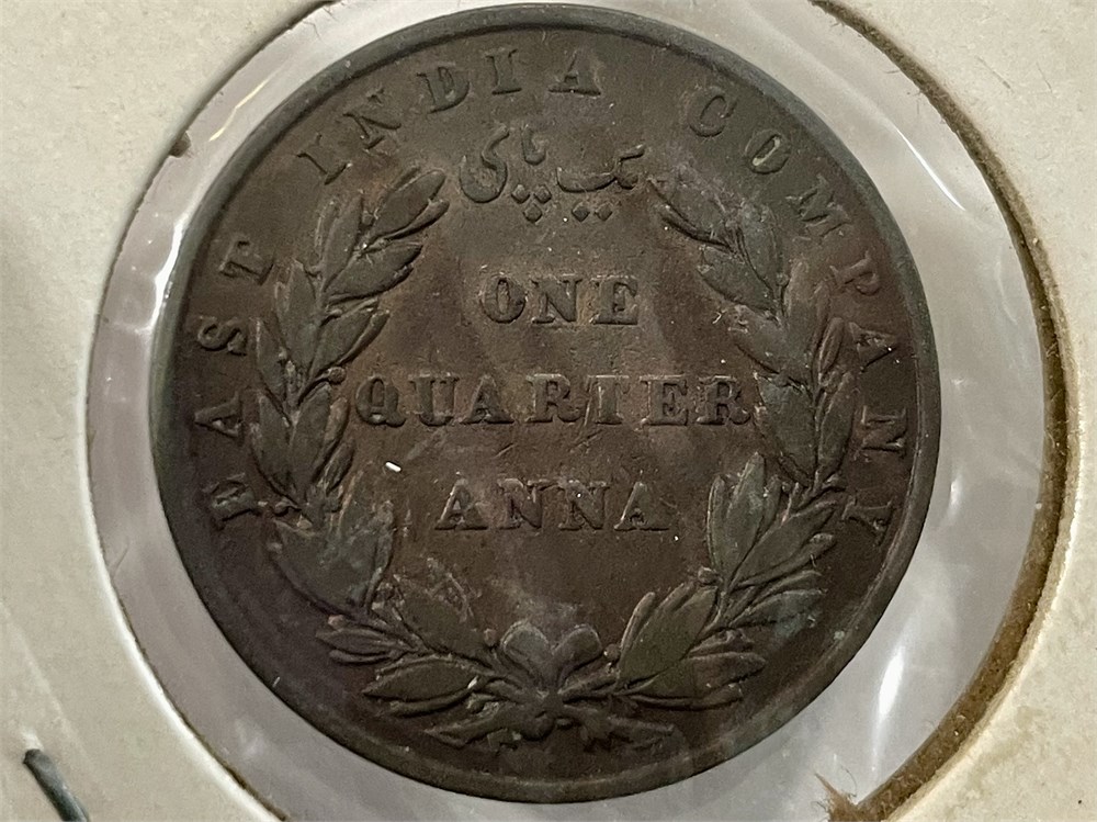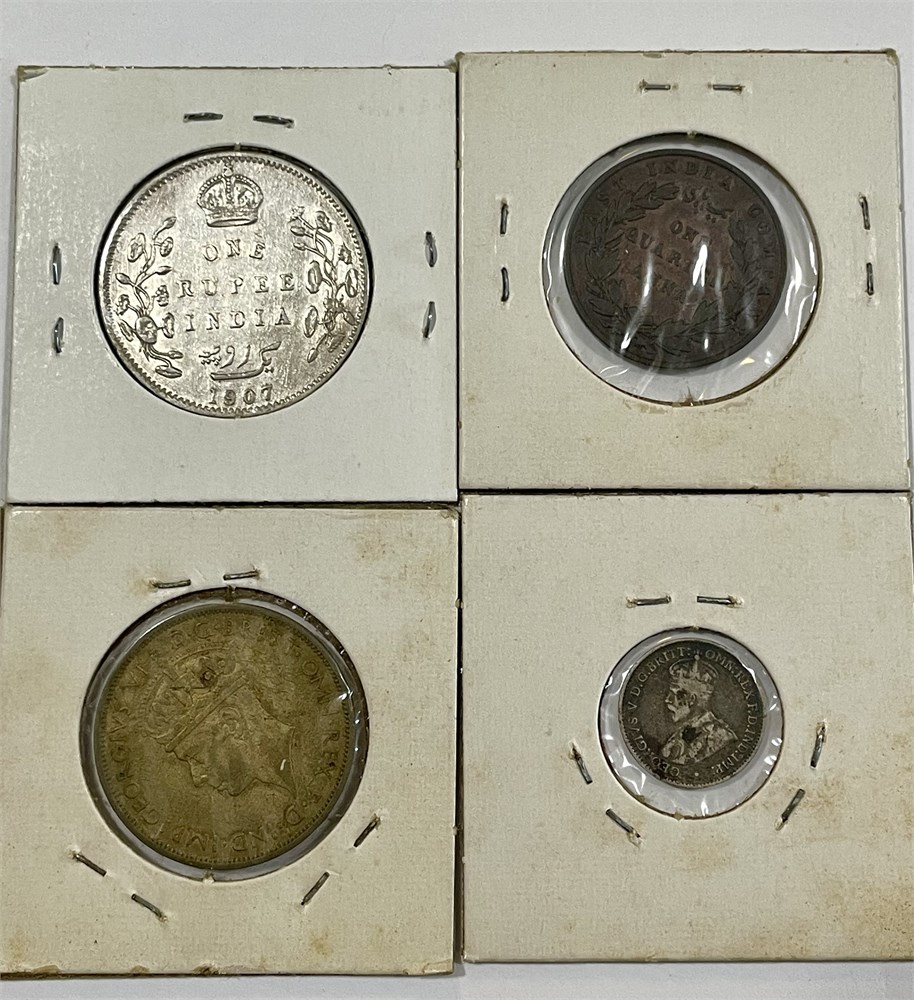 1907 Rupee, 1835 British India 1/4 A, 1938 & 1919 Brit W Africa Coins