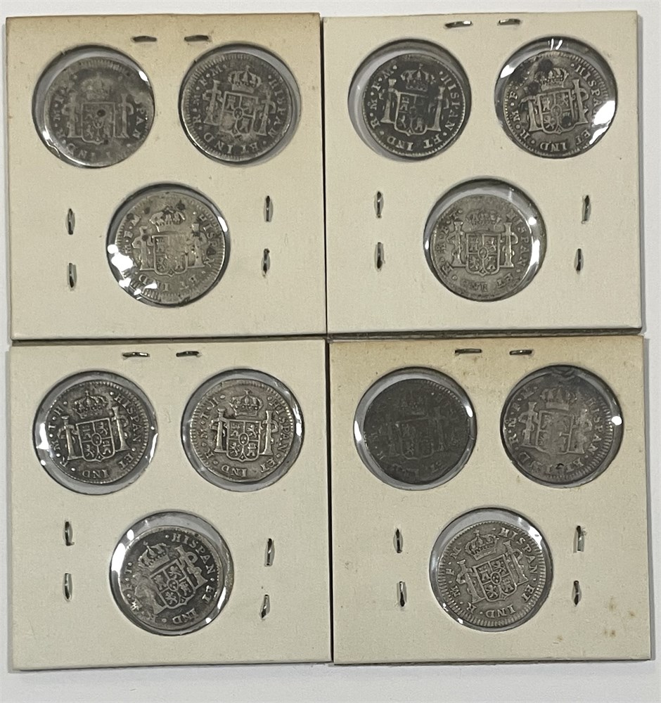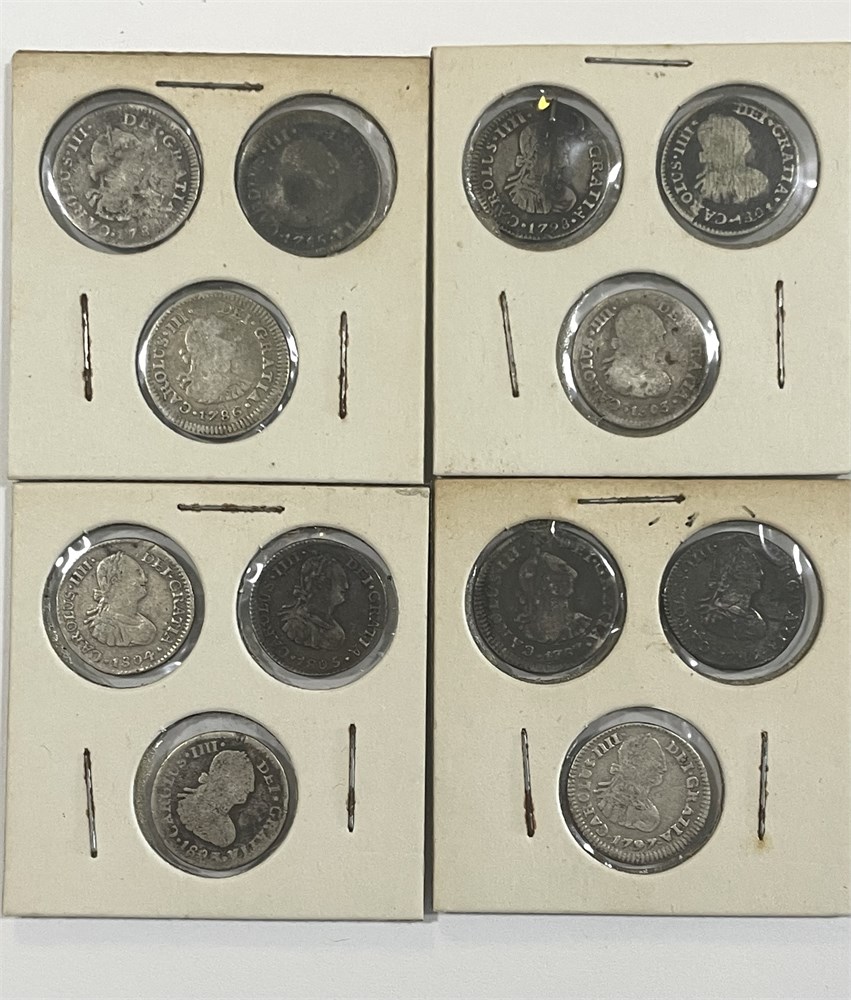 12 Mexican Silver 1/2 Reales, Asst. Dates 1784 to 1803