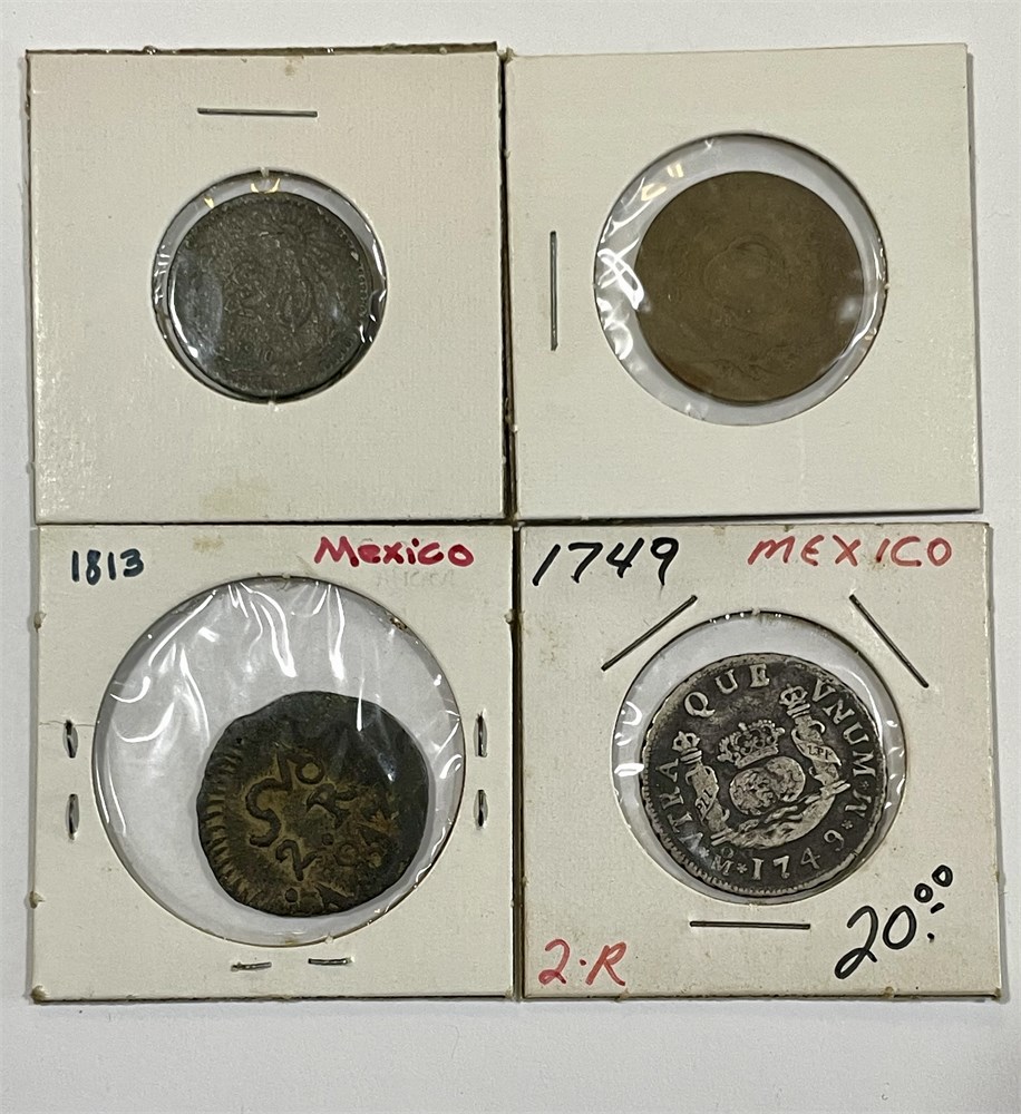 1910 Mexico 20c, ND Mexico 2c, 1813 Insurgence 2R, 1749 Mexico 2R
