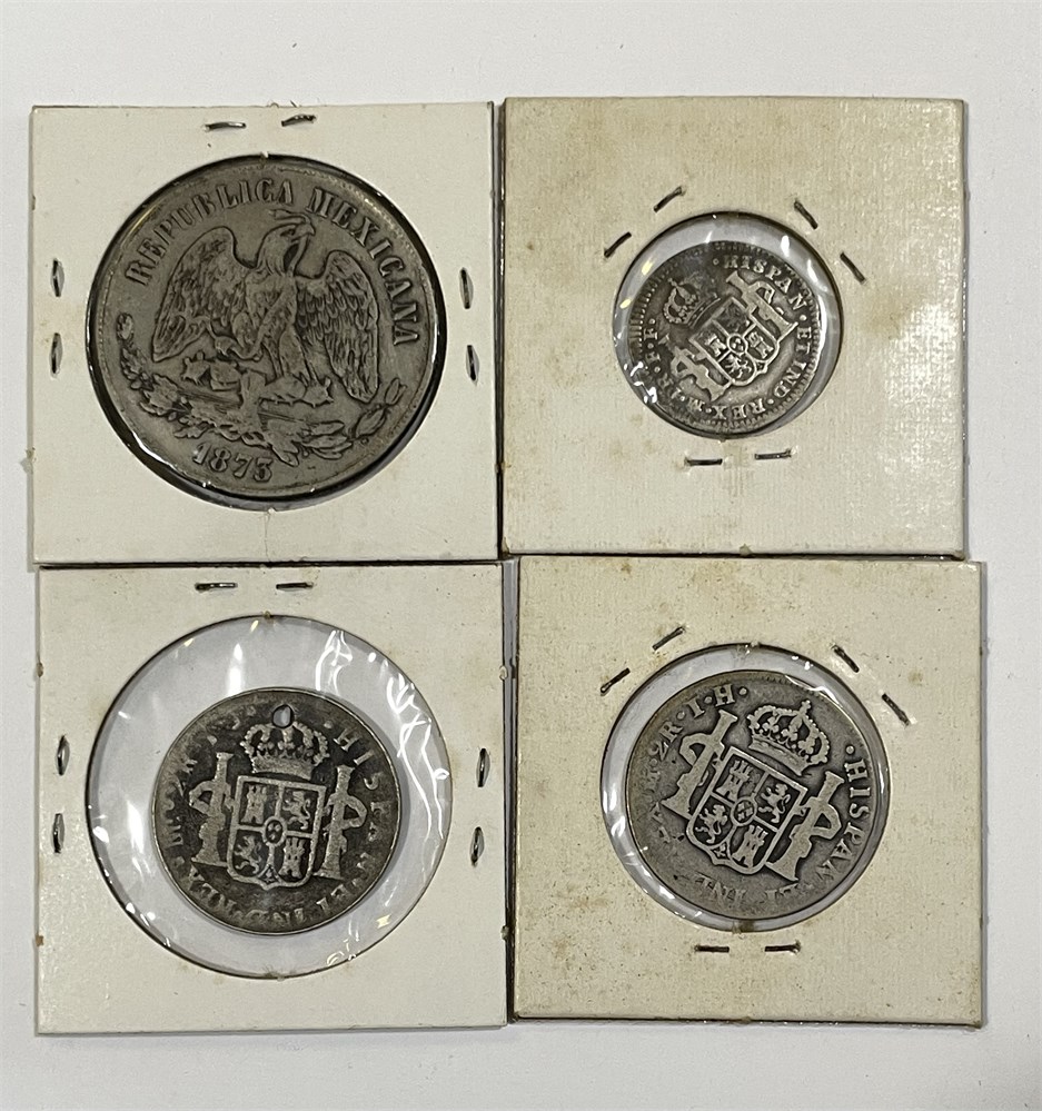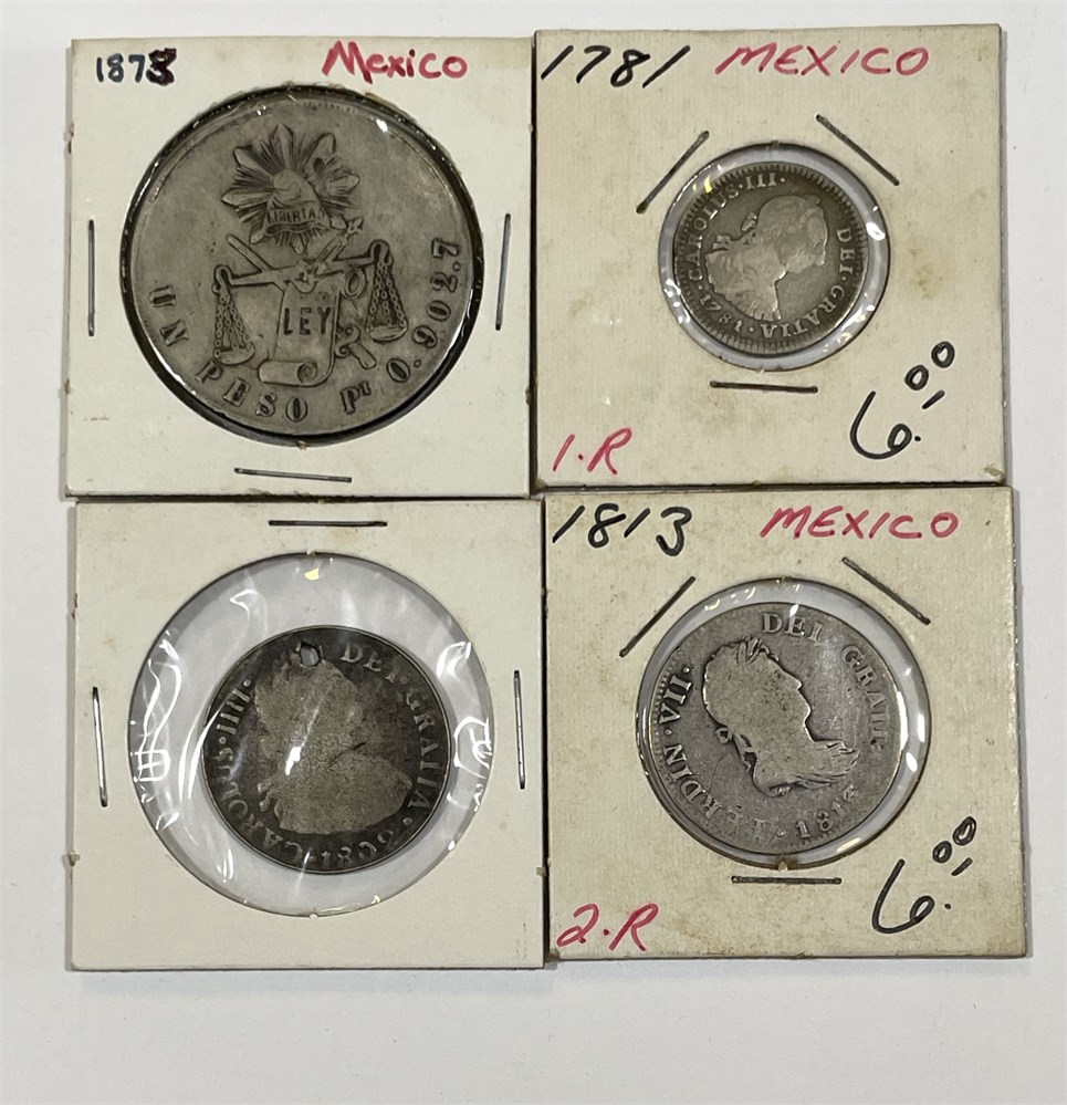 1873-Pi Mexican Silver Peso, 1781 Mexico 1R, 1802 & 1813 Mexico 2R