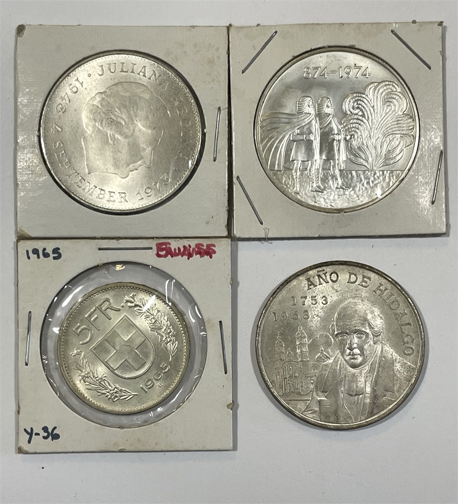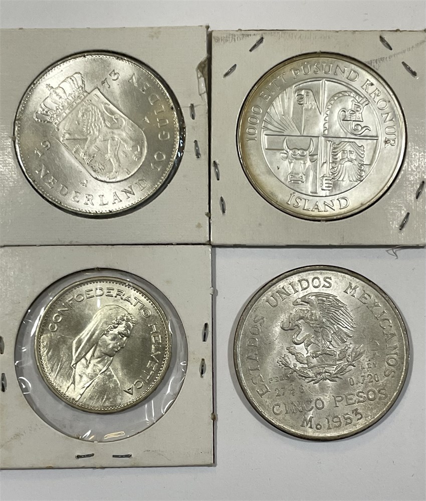 1973 Netherlands 10G, 1974 Iceland 1000K, 1965 Swiss 5F, 1953 Mexico 5p; Silver