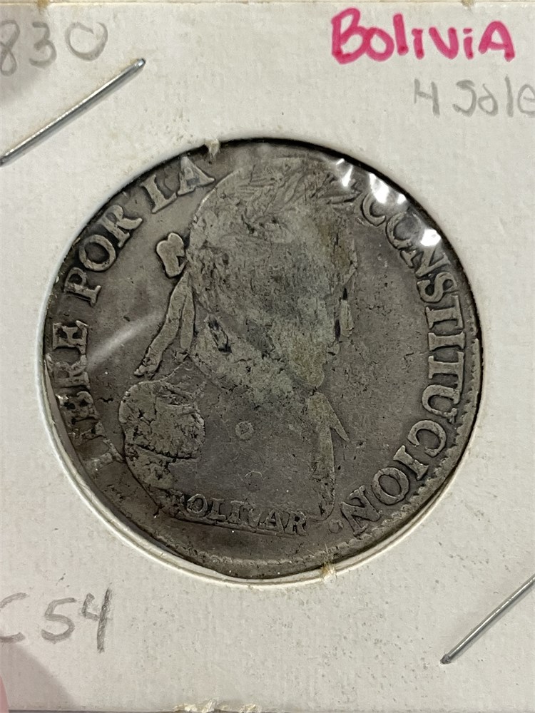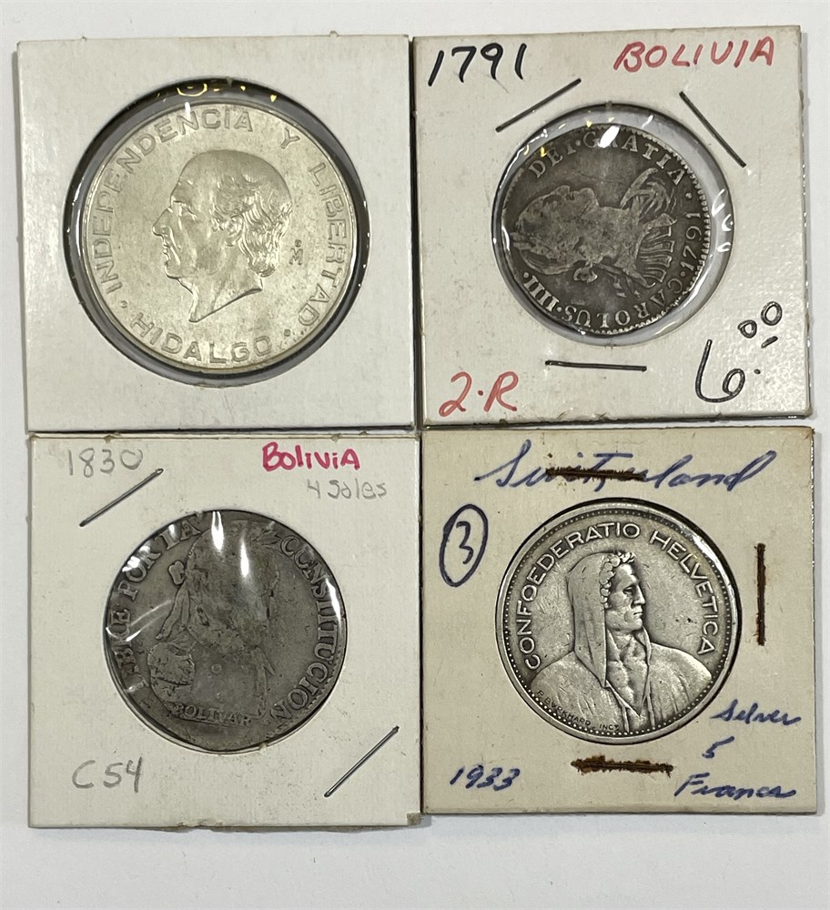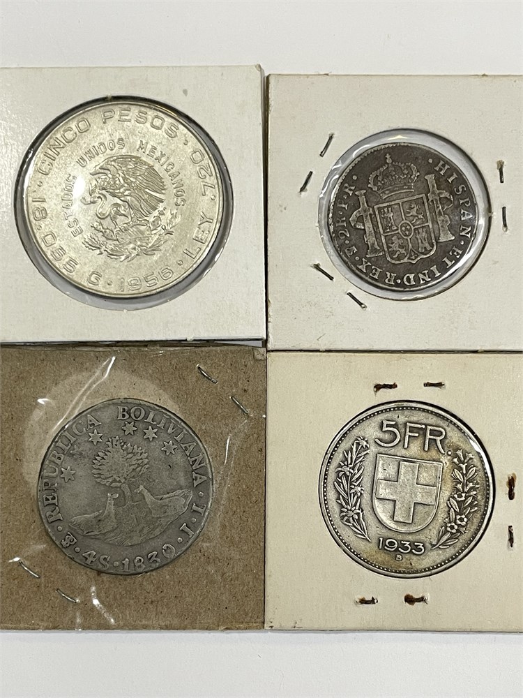1956 Mexico 5P, 1791 Bolivia 2R, 1830 Bolivia 4S, 1933 Swiss 5F; All are Silver