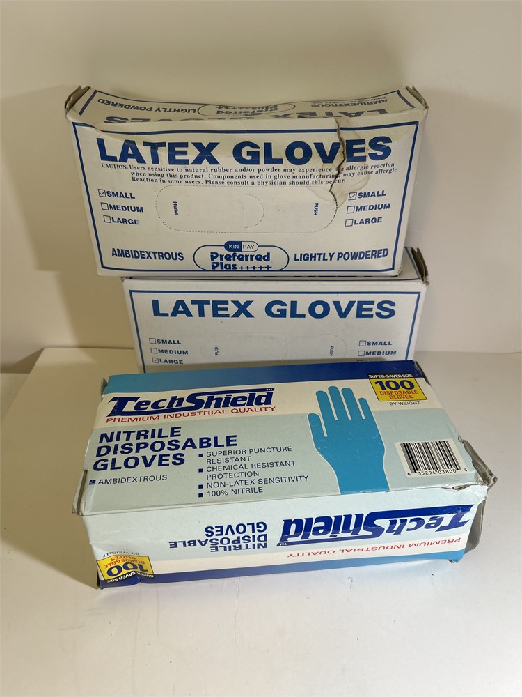New latex, gloves, and nitrile Late text, large and small Nitrile Medium all new in the boxes New