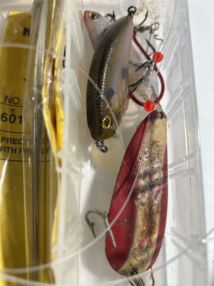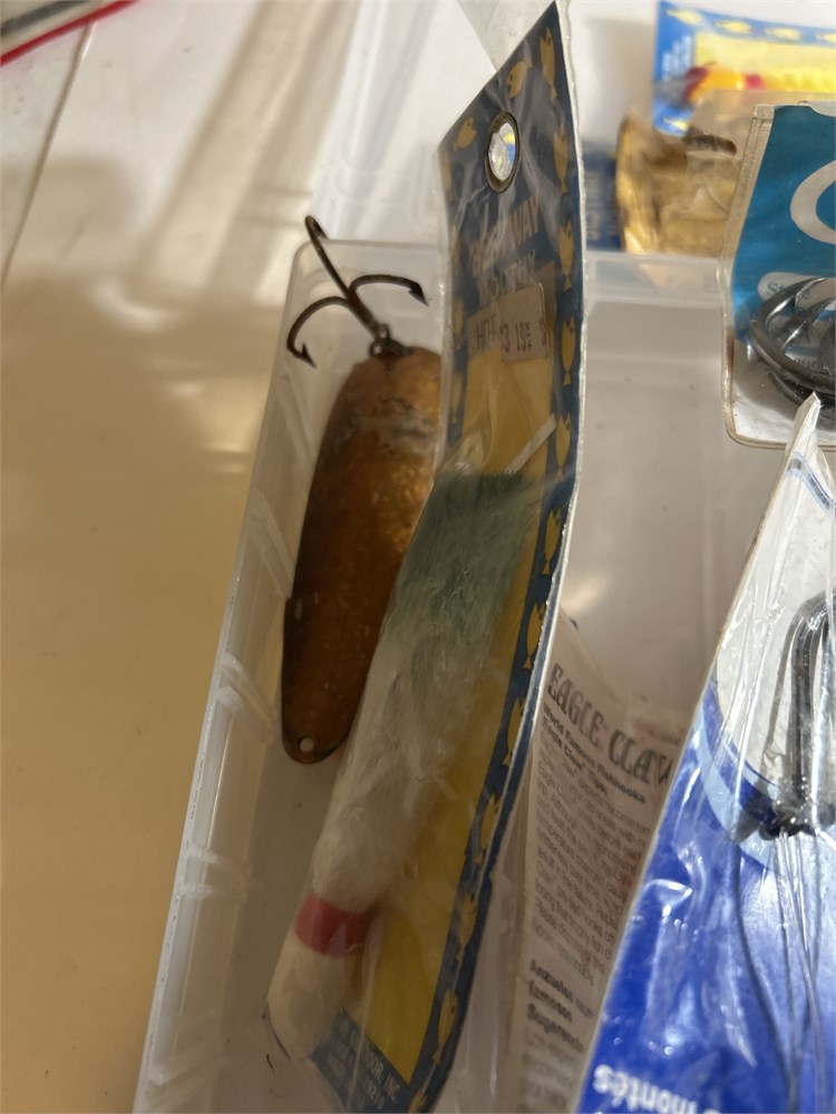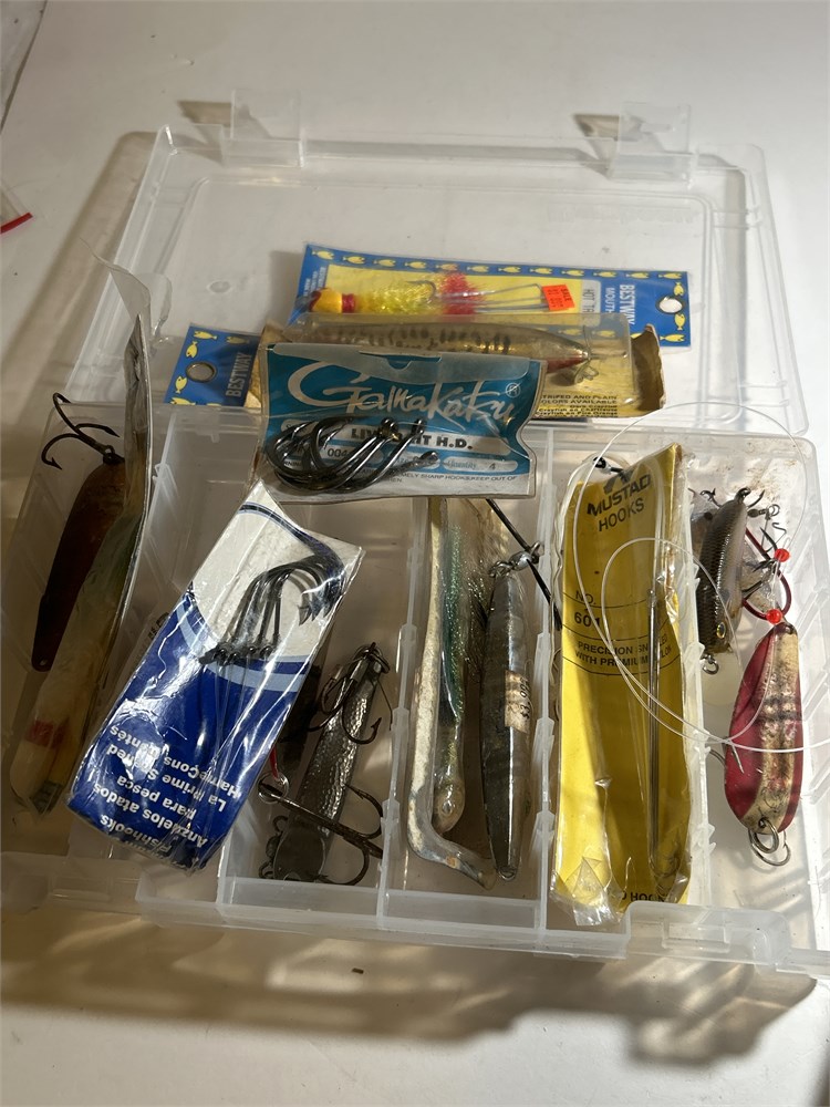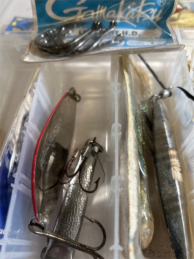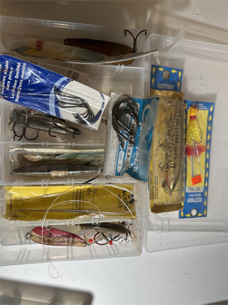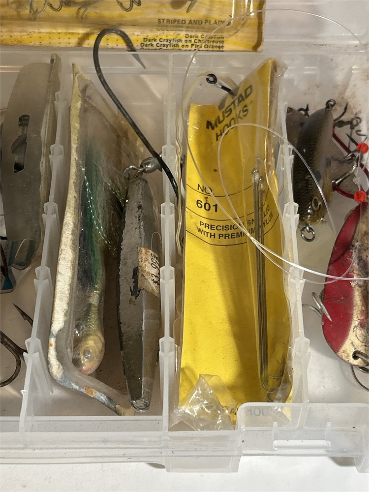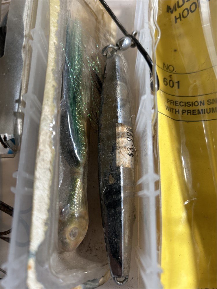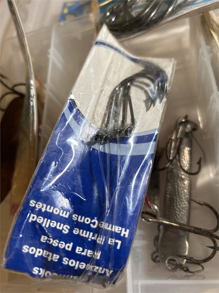 Saltwater planes, bottom, fishing Grouper rigs hooks, a little bit of everything including container