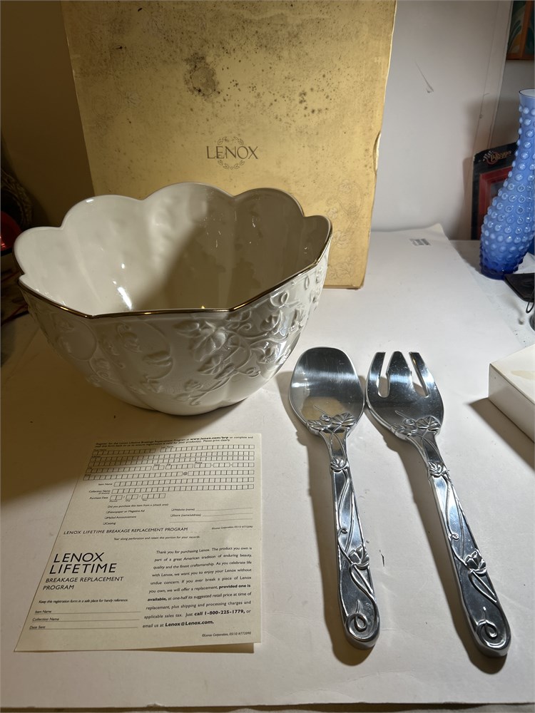 Lenox Collection The China Ivy Trellis Bowl w Original Certificate & Gift Box With spoon and fork