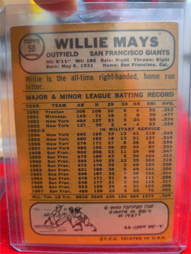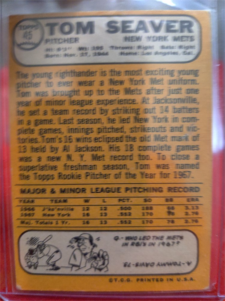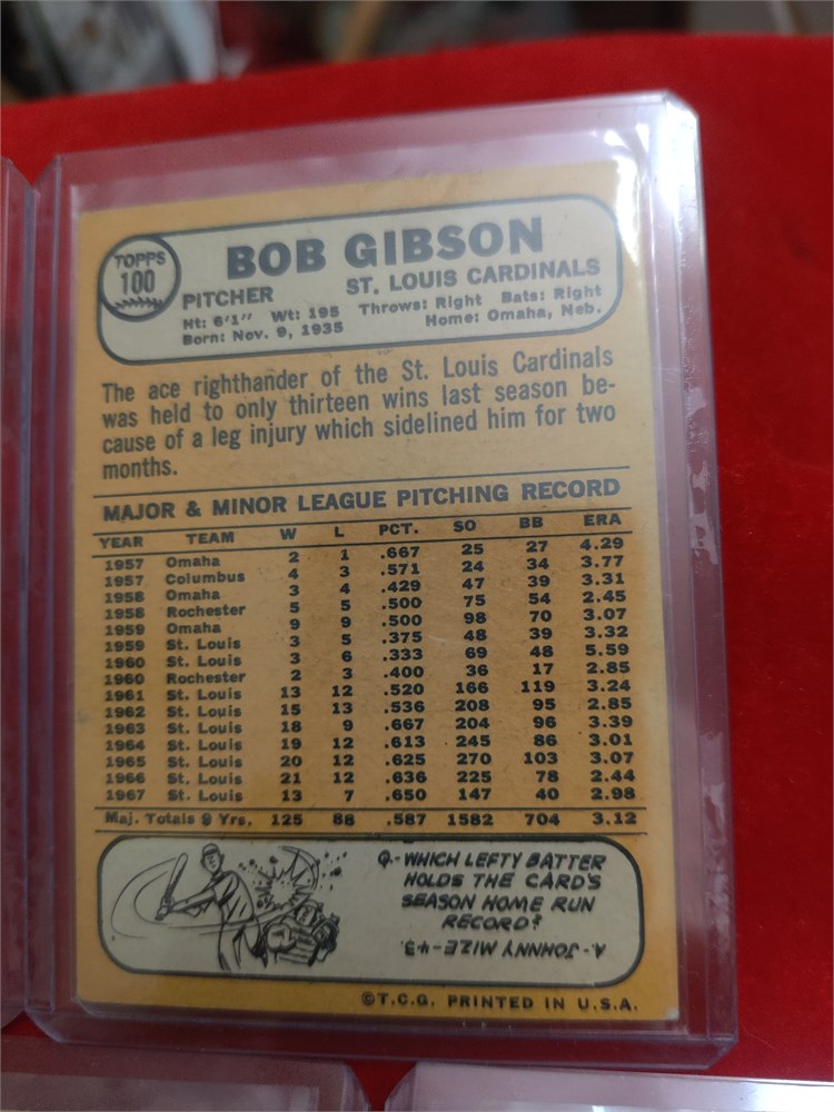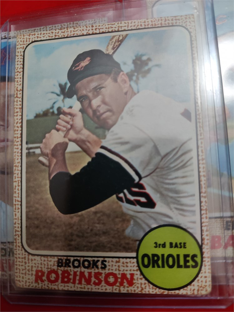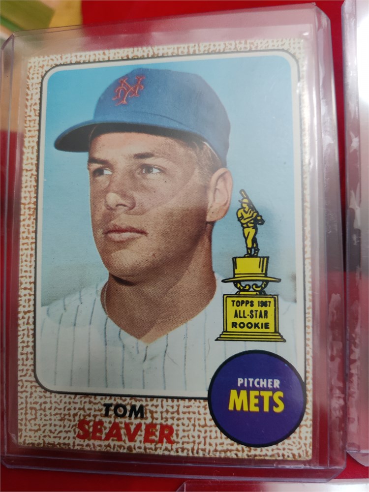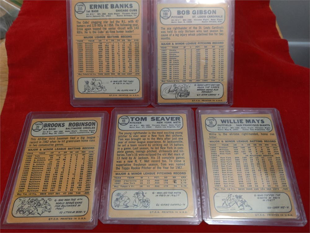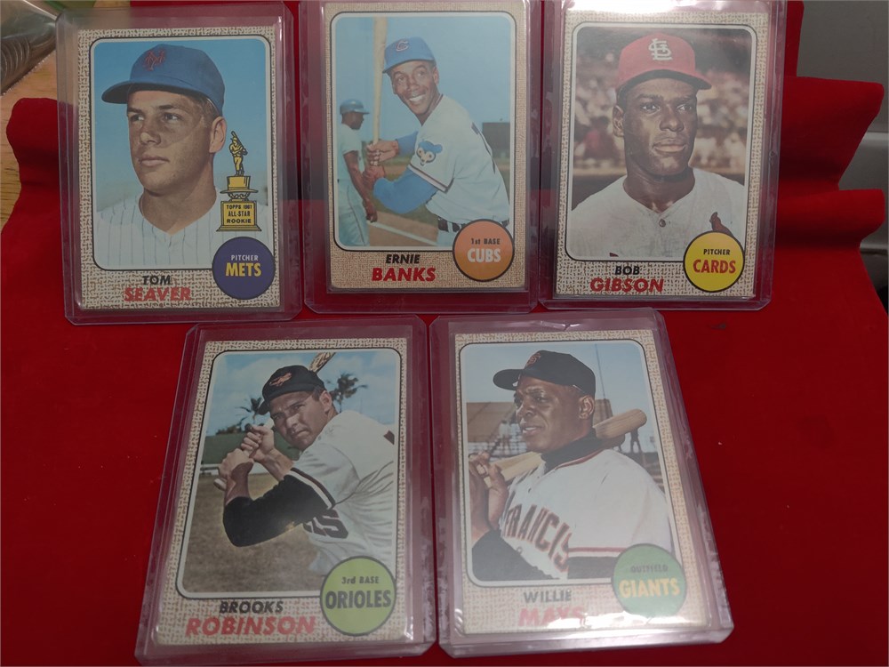 Lot of 5 1968 Topps baseball cards. Includes five Hall of famers. Willie Mays, Tom Seaver, Brooks Robinson, Ernie Banks and Bob Gibson.