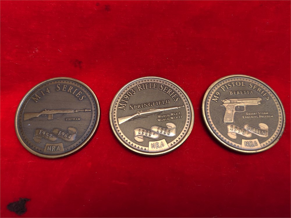Three National rifle association coins. Includes M14 series, m1903 rifle series and M9 pistol series.