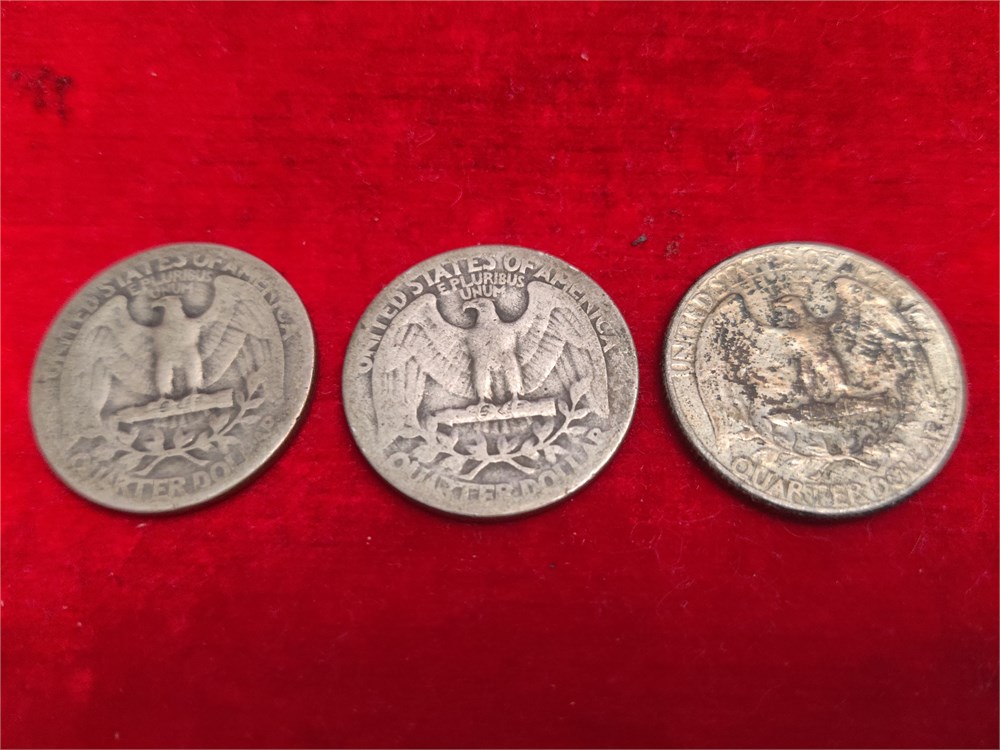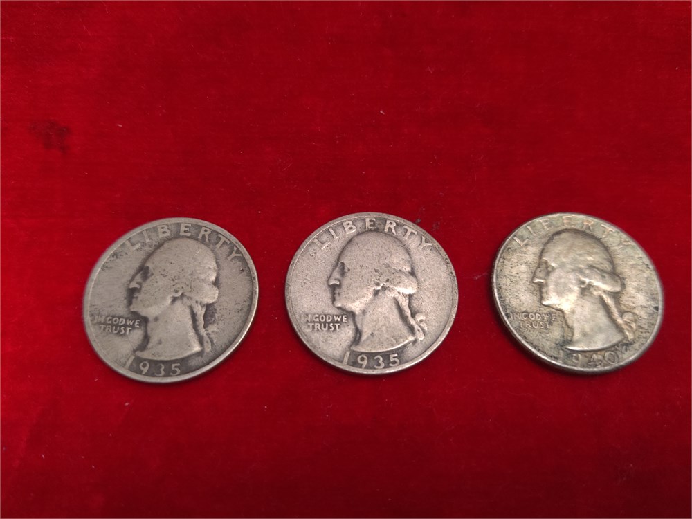 Lot of three Washington silver quarters. Includes 21935 and 1940.