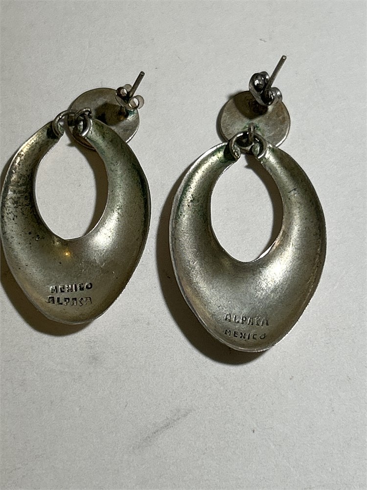 Vintage Alpaca Mexico Pierced Earrings, Signed (L)