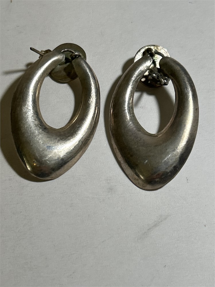 Earrings, Signed Silvertone