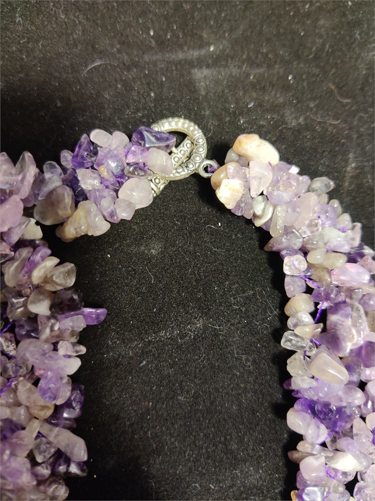 Vintage  HDNY Amethyst multi strand Chip Necklace 17".