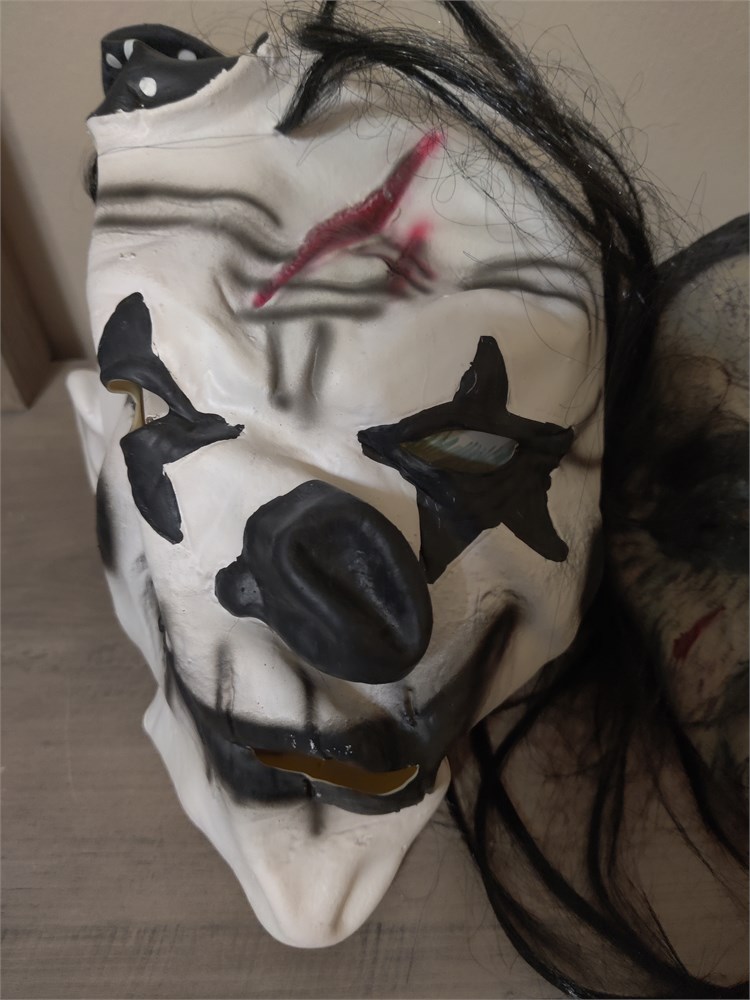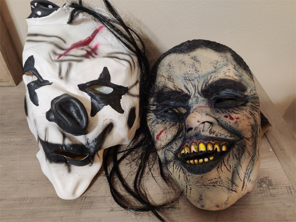 Pair of rubber Halloween masks. Features clown and zombie. Both are in good used condition.