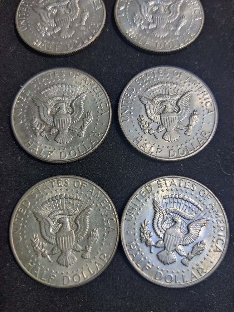 Lot of 9 Kennedy Half Dollars 40% Silver (R)