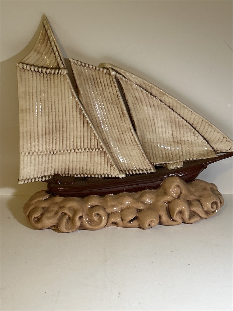 Vintage 1981 Handmade Ceramic Sailboat On Water