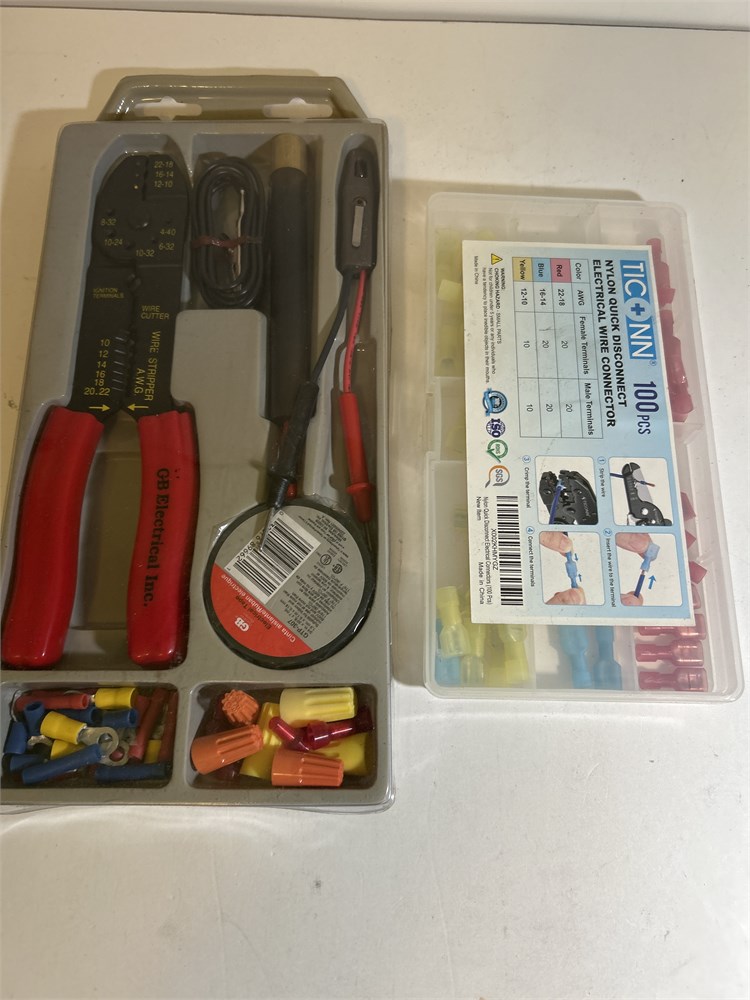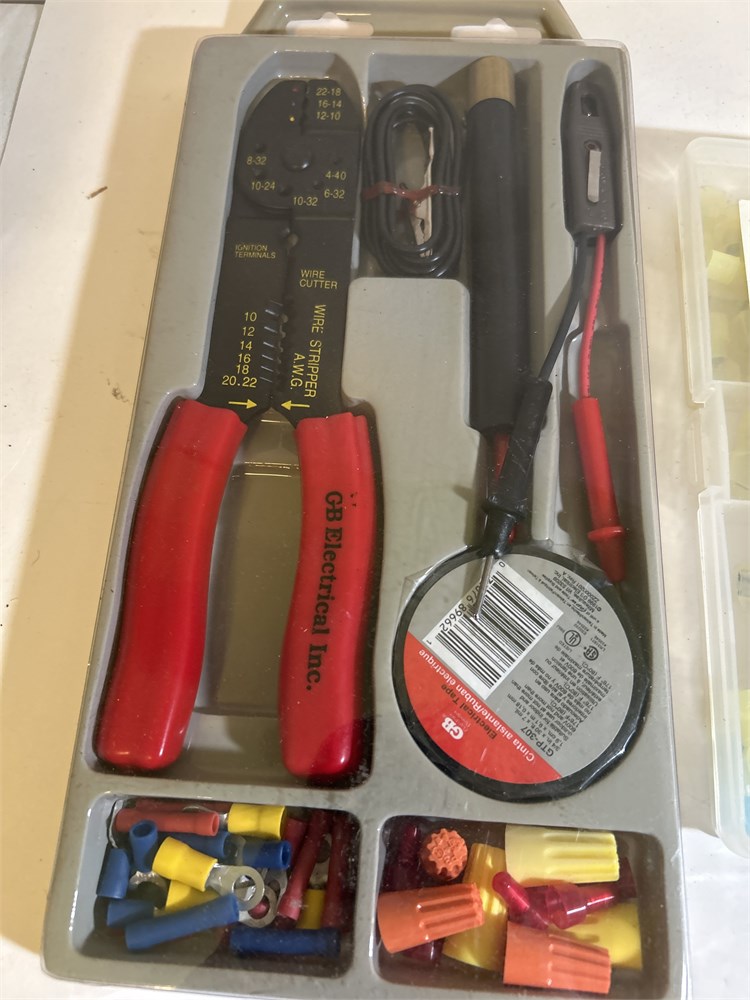 GB electrical Incorporated, stripping players, testers, black tape, wire connectors and a separate box of wire connector