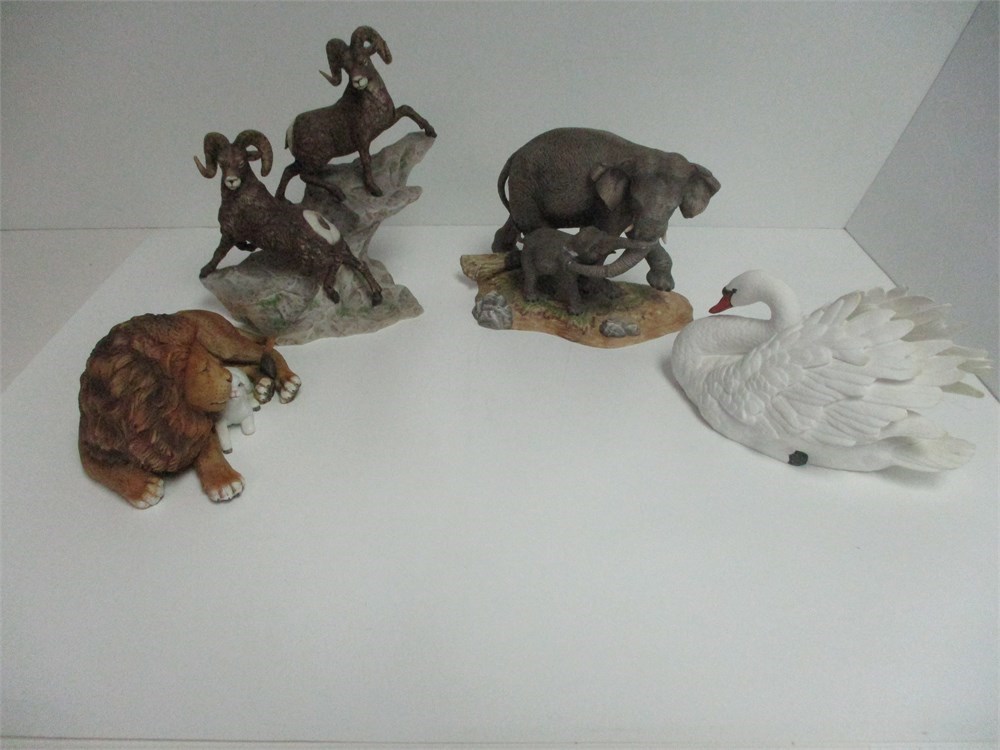 Grouping of Large Lenox figures, Lion & Lamb,Swan,Elephant,+