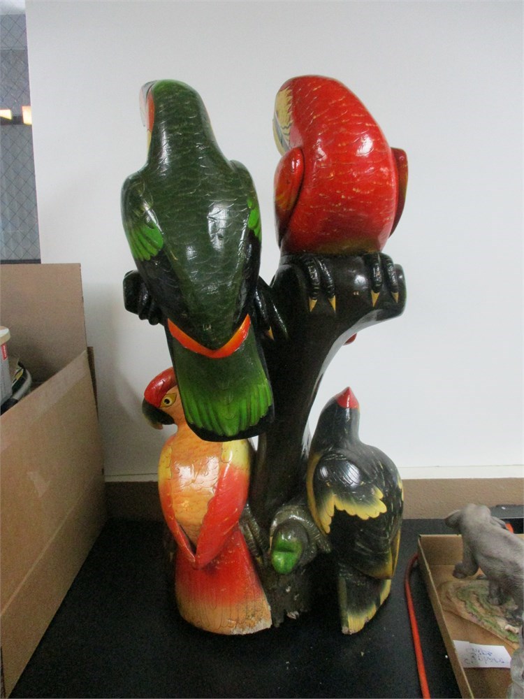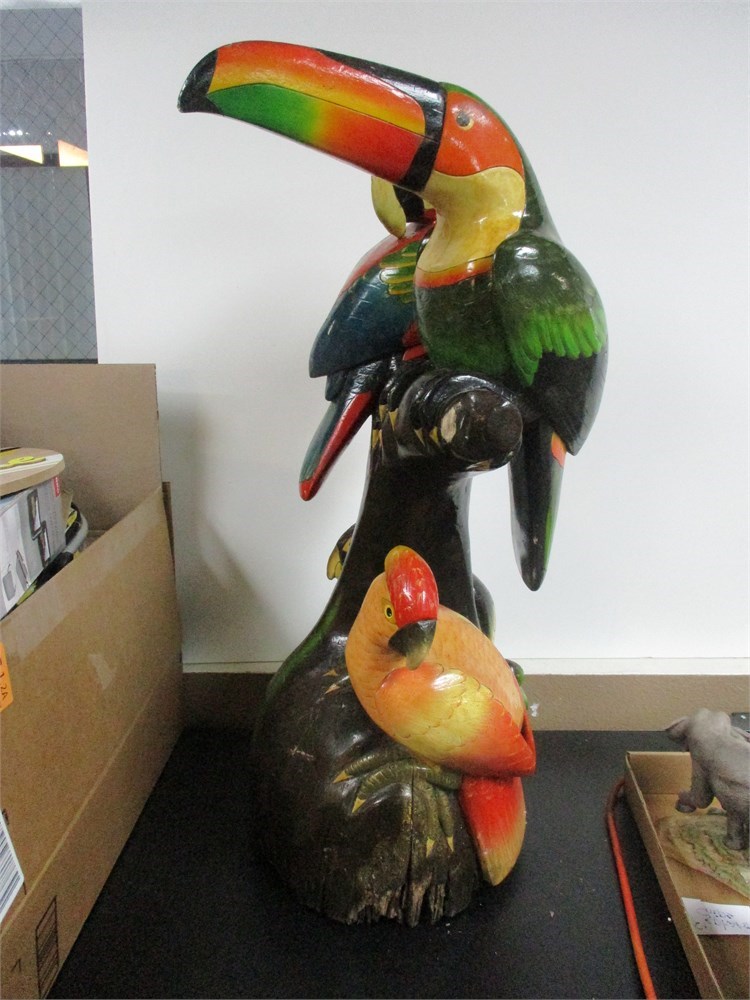CARVED LIGHT WEIGHT WOOD PARROTS, HUGE 28" TALL BY 13" WIDE
