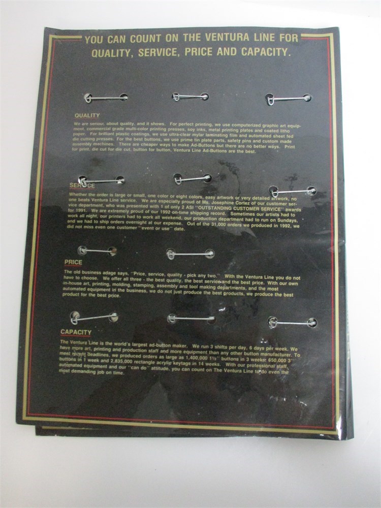 The Ventura Line Ad-Button Sampler, Nice collection of Pin Backs